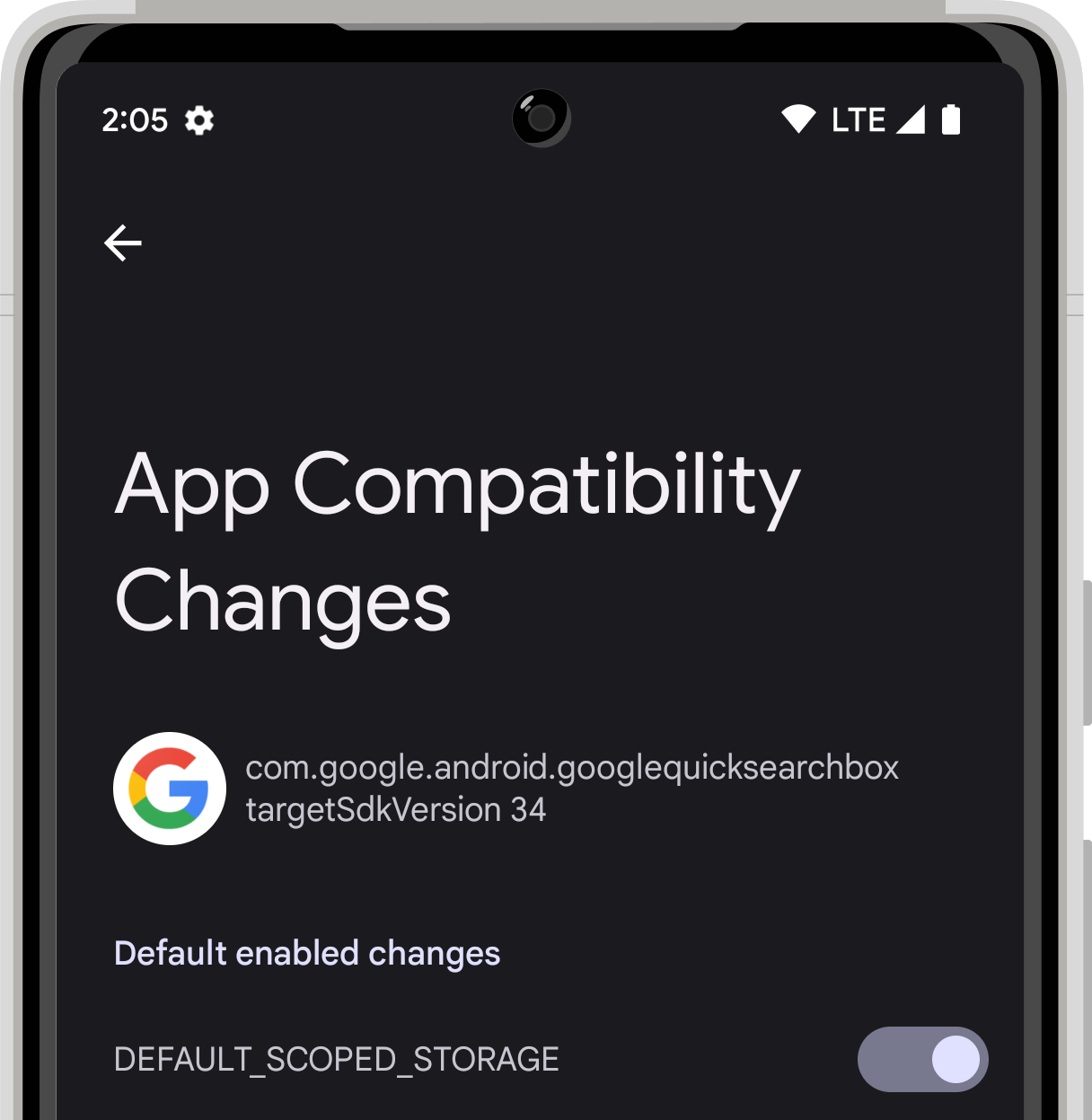 • Test targeted changes without actually changing the app's targetSdkVersion. You can use the toggles to force-enable specific targeted behavior changes to evaluate the impact on your existing app.