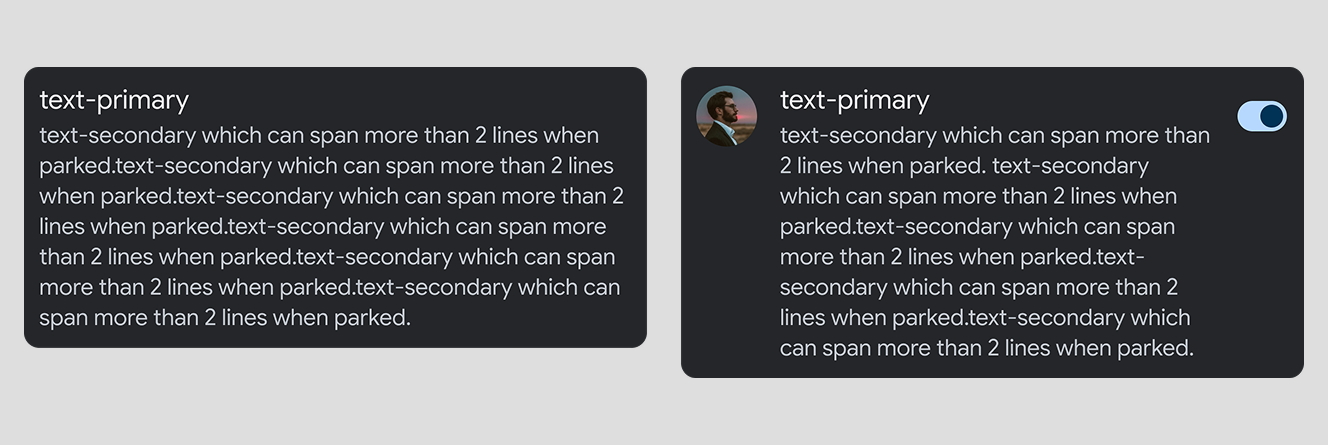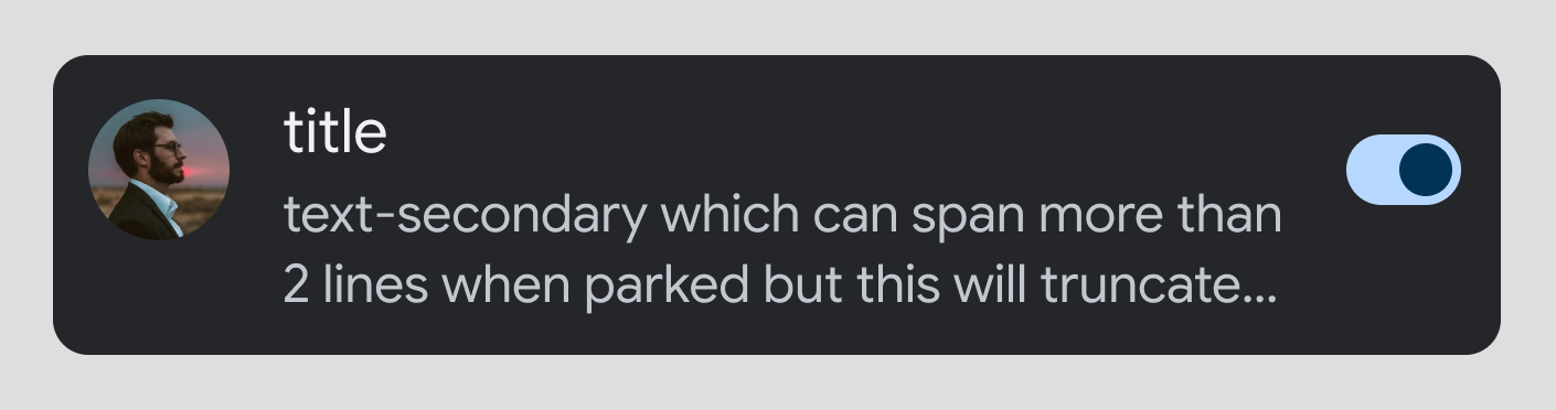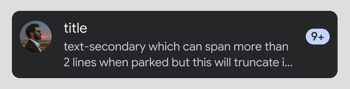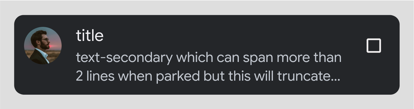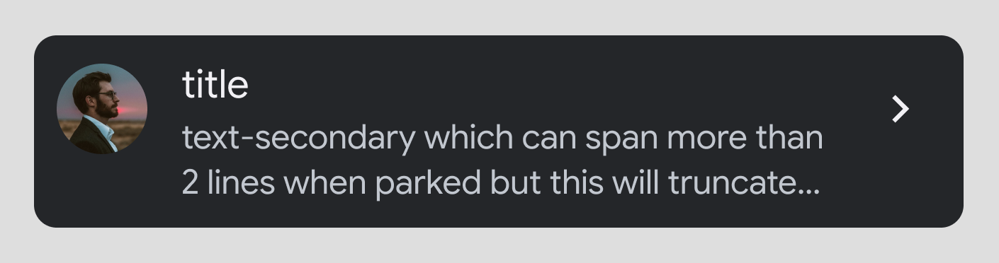 Longer secondary text: If secondary text is longer than 2 lines, it will be truncated while driving. The full text will be visible only when parked.