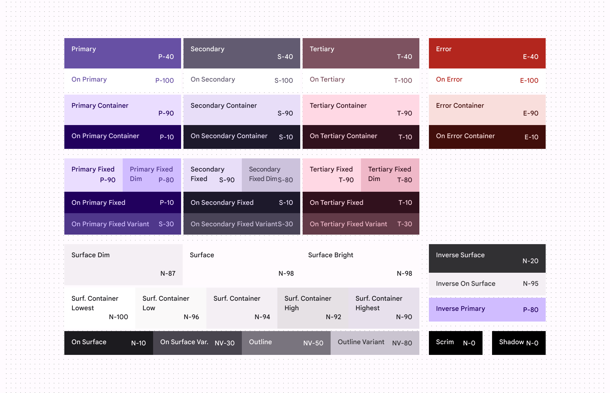- Surface colors refer to any neutral derived colors used for background colors.