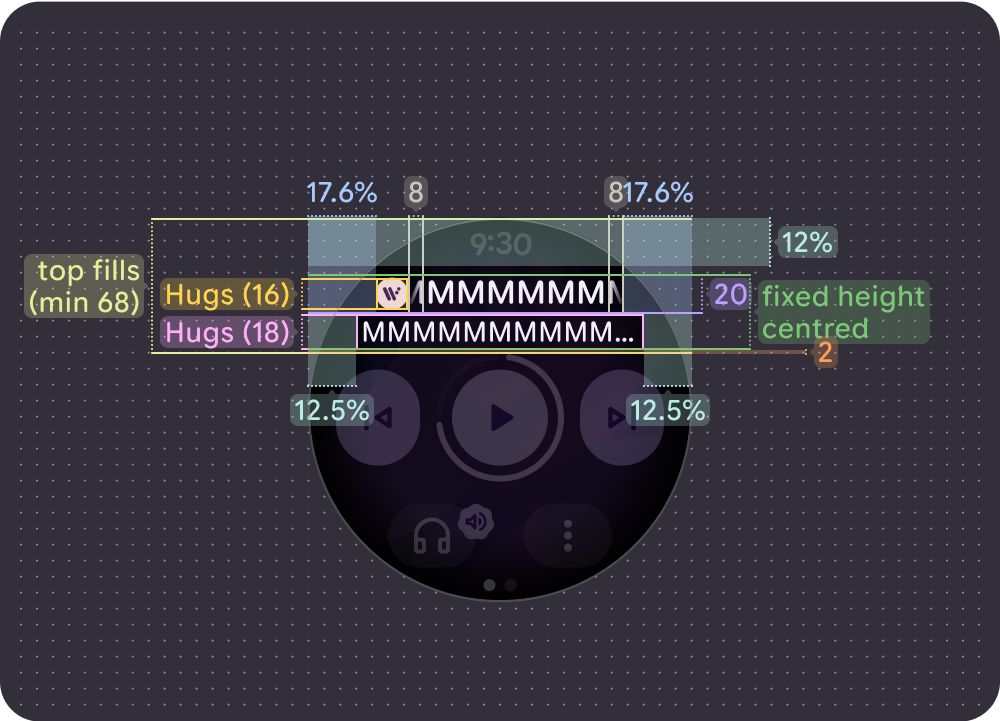 The large screen adaptations for media are solely focused on the media controls screen. All other elements are captured in chip, button, and dialog items or in the lists breakdown of large screen behavior.