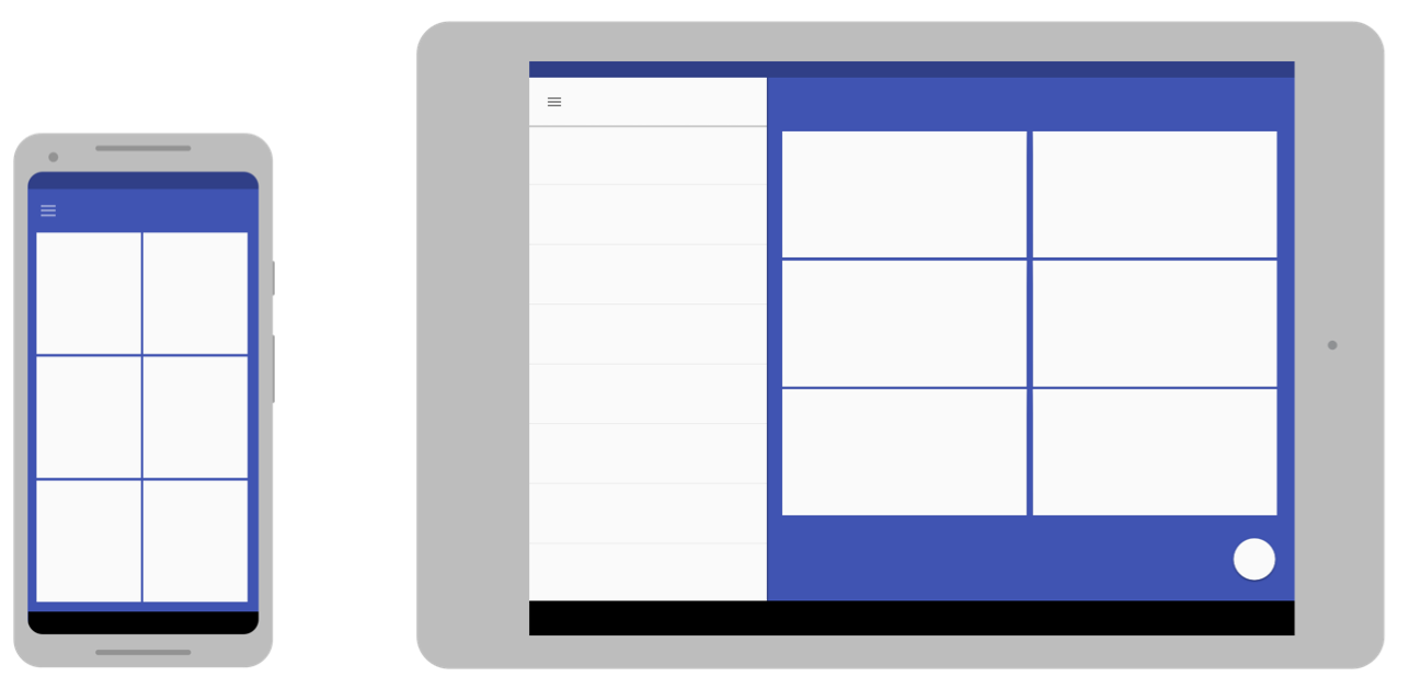 Your app's layout should always be responsive to different display sizes. However, even a responsive layout can't provide the best user experience on every device or multi‑window mode display. For example, the UI you designed for a phone, probably doesn't provide an optimal user experience on a tablet. Adaptive design provides alternative layouts optimized for different display dimensions.