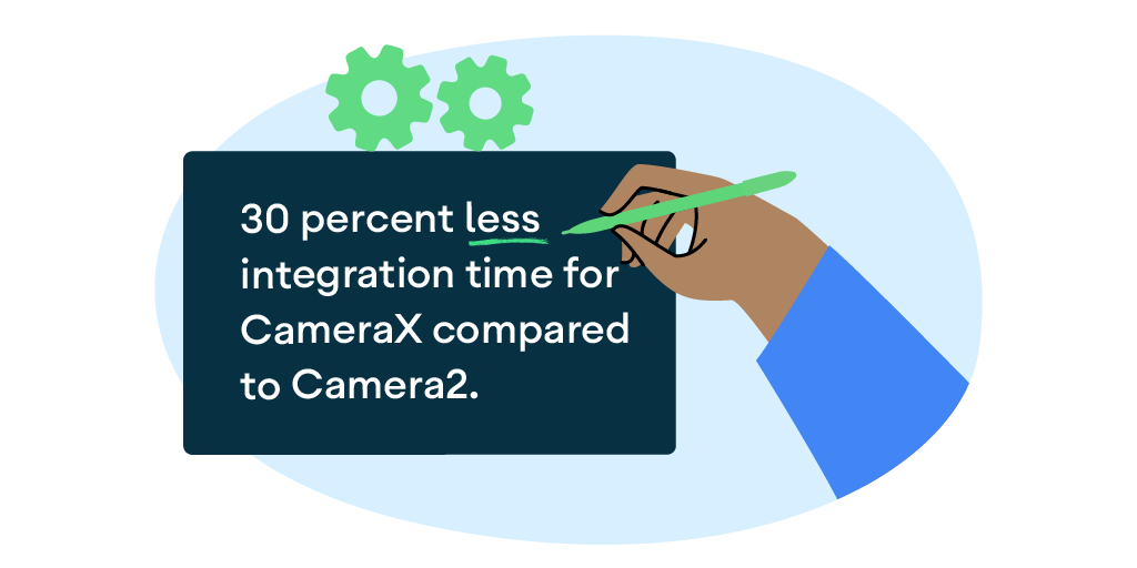 The Microsoft Lens team found that implementing the CameraX library saved their developers a significant amount of time, as a result of fewer testing and optimization cycles. They estimate that CameraX took their engineering team about four months of effort for integration time, compared to Camera2, which would have taken about six.