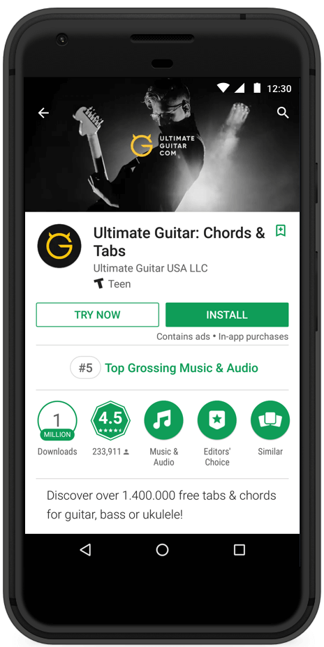 Ultimate Guitar has a big fan base of engaged Android users, and they are always looking to reach new people. UG is excited about Google Play Instant and the Try Now feature, as they are confident that increased trials will result in more user growth.