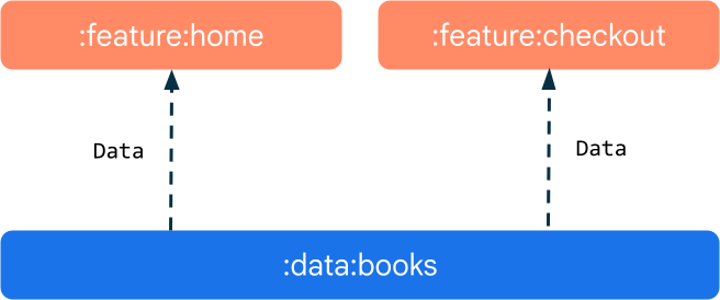 To overcome this problem you can have a third module mediating between two other modules. The mediator module can listen for messages from both of the modules and forward them as needed. In our sample app, the checkout screen needs to know which book to purchase even though the event originated in a separate screen that is part of a different feature. In this case, the mediator is the module that owns the navigation graph (usually an app module). In the example, we use navigation to pass the data from the home feature to the checkout feature using the Navigation component.