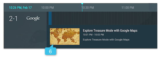COLUMN_APP_LINK_COLOR- The accent color of the app link for this channel. For an example accent color, see figure 2, callout 3.COLUMN_APP_LINK_ICON_URI- The URI for the app badge icon of the app link for this channel. For an example app badge icon, see figure 2, callout 2.COLUMN_APP_LINK_INTENT_URI- The intent URI of the app link for this channel. You can create the URI usingtoUri(int)withURI_INTENT_SCHEMEand convert the URI back to the original intent withparseUri().COLUMN_APP_LINK_POSTER_ART_URI- The URI for the poster art used as the background of the app link for this channel. For an example poster image, see figure 2, callout 1.COLUMN_APP_LINK_TEXT- The descriptive link text of the app link for this channel. For an example app link description, see the text in figure 2, callout 3.